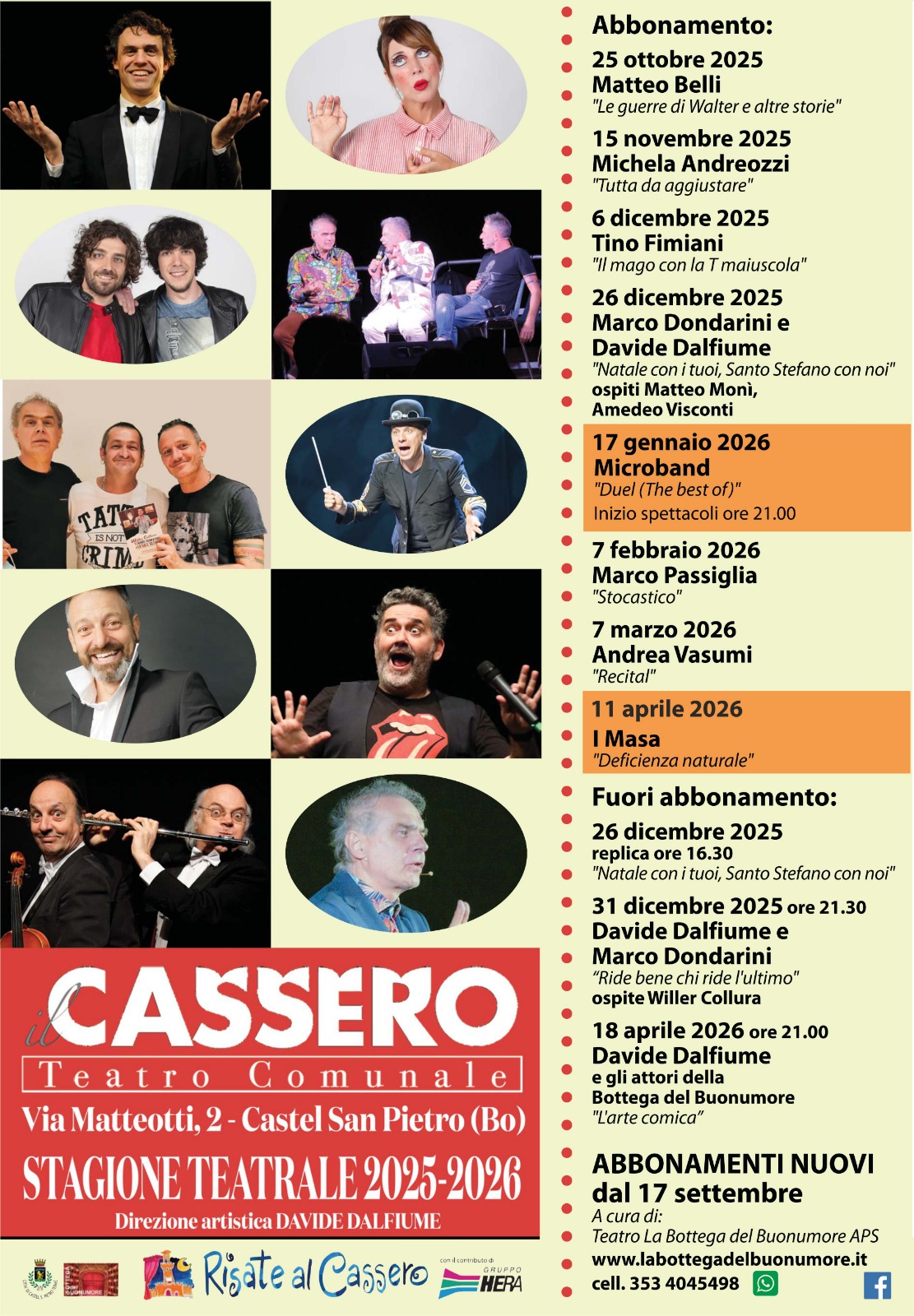 La stagione è curata dal direttore artistico Davide Dalfiume, realizzata dal Teatro La Bottega del Buonumore APS in collaborazione col Comune di Castel San Pietro Terme.