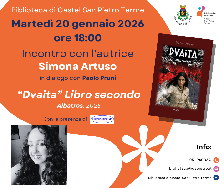 Il primo appuntamento è in programma martedì 20 gennaio 2026, con Simona Artuso, che presenterà il romanzo “Dvaita – Libro secondo” (Albatros, 2025). L’autrice sarà intervistata da Paolo Pruni, offrendo al pubblico l’occasione di approfondire i temi e il percorso narrativo dell’opera.