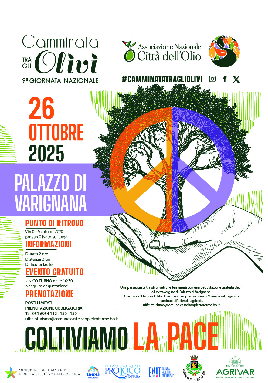 L’iniziativa è promossa con il patrocinio del Ministero dell’Ambiente e della Sicurezza Energetica, dell’UNPLI – Unione Nazionale Pro Loco d’Italia, dell’ENIT – Agenzia Nazionale del Turismo, del Comune di Castel San Pietro Terme e con la collaborazione di AGRIVAR – Azienda Agricola di Palazzo di Varignana.