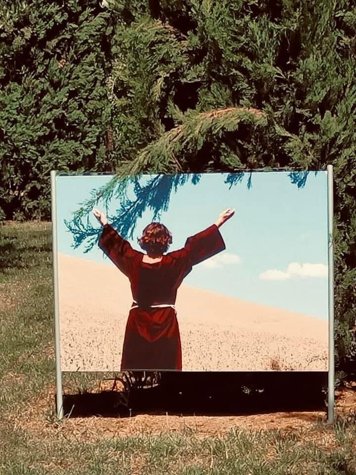 Da sinistra: Giorgia Bottazzi; un'opera fotografica di Giorgia Bottazzi, emblematica della mostra, che è in esposizione permanente nel Giardino; e uno scorcio del Giardino