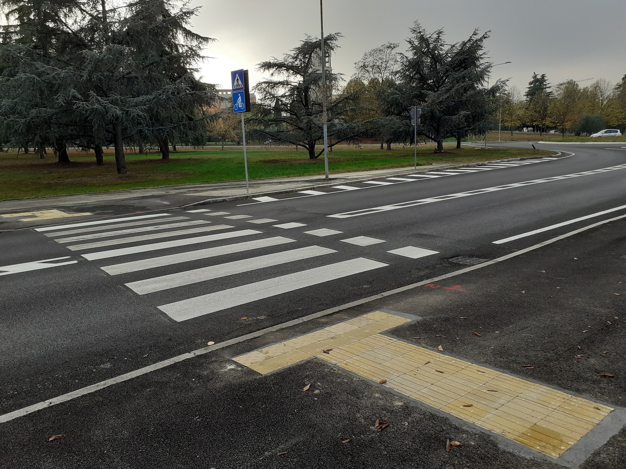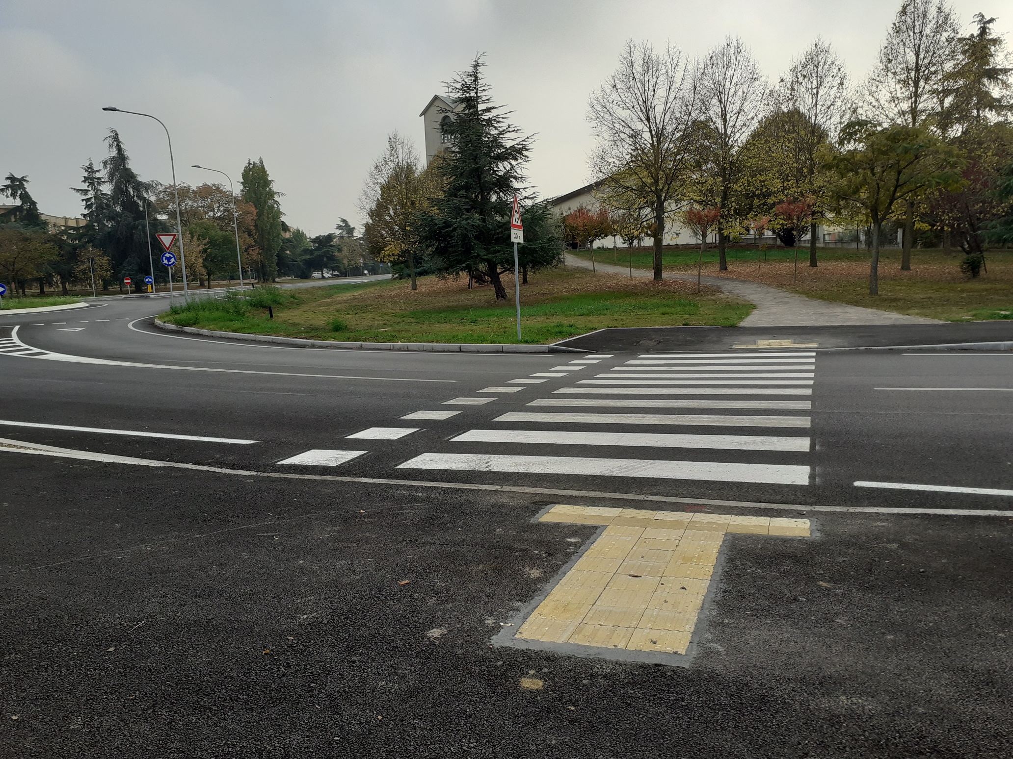 Sono stati installati nei giorni scorsi cinque percorsi tattili che migliorano la mobilità pedonale di persone vedenti ed ipovedenti in prossimità degli attraversamenti pedonali della nuova rotatoria all'intersezione tra le vie Scania e Moro. L'intervento era previsto nel progetto della rotatoria e conclude di fatto l'opera.Questi percorsi di tipo Loges (acronimo di “linea orientamento guida e sicurezza”) sono costituiti da superfici dotate di rilievi appositamente creati per essere percepiti sotto i piedi e consentono alle persone con deficit visivi autonomia negli spostamenti in luoghi pubblici senza l'ausilio di assistenza.In particolare quattro di questi percorsi sono stati installati sugli attraversamenti pedonali dislocati lungo la via Scania tra via Torricelli e la nuova rotatoria e tra quest'ultima e via Togliatti, e uno sul lato della chiesa di Santa Clelia nell'attraversamento pedonale di via Togliatti, in prossimità della via Scania.«Quello sulla rotatoria Scania-Moro è il primo intervento del genere - dichiara il vice sindaco Andrea Bondi -. L'Amministrazione comunale si pone l'obiettivo di predisporre questo tipo di percorsi in corrispondenza degli attraversamenti stradali in tutti gli interventi di riqualificazione che saranno pianificati in futuro». «In generale lo scopo di questi percorsi tattili – spiegano dall'Ufficio tecnico comunale - è quello di trasmettere ai disabili visivi una percezione immediata dell'ambiente antistante il loro cammino in termini di possibilità o meno di procedere nella direzione desiderata; infatti tramite l'impiego di linee in rilievo il non vedente viene informato della possibilità di poter seguire la direzione desiderata, oppure "legge" situazioni di potenziale pericolo mediante strisce che producono al contatto del bastone una sensazione di netta scomodità. Il riconoscimento dei segnali tattili attraverso il bastone avviene quindi in modo naturale senza confusione d'informazione e nella massima sicurezza. Nella fattispecie tali percorsi sono costituiti dalla combinazione di strisce con codice per non vedenti di "attenzione/servizio" e di strisce con codice per non vedenti di "arresto/pericolo" a protezione di zone che debbono essere impegnate con molta cautela, come gli attraversamenti pedonali della rotatoria realizzata».La rotonda Scania-Moro è stata costruita fra la fine del 2021 e i primi mesi del 2022. L'opera era prevista nel progetto di insediamento dell'adiacente comparto urbanistico. L'importo dei lavori ammontava a circa 150 mila euro, di cui 100 mila derivanti dalle garanzie prestate dalla cooperativa edificatrice proprio per la realizzazione della rotatoria e la somma rimanente da risorse del bilancio comunale. Nel corso dell'estate è stata completata l'installazione della nuova illuminazione pubblica a led.
