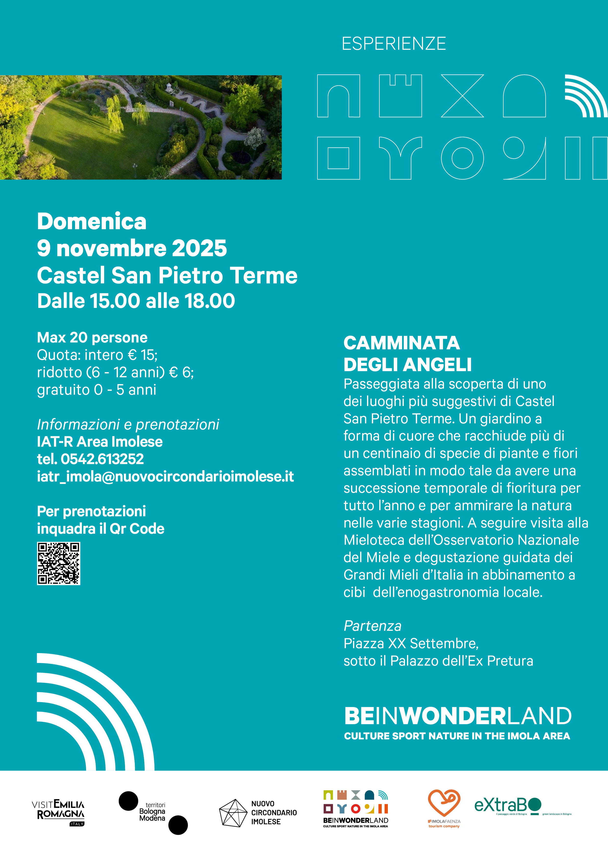 Il Nuovo Circondario Imolese, all'interno del contenitore "BeInWonderland", organizza la “Camminata degli Angeli”, un percorso ad anello di circa 5 chilometri che attraversa alcuni dei luoghi più significativi e suggestivi di Castel San Pietro Terme, alla scoperta delle perle del nostro territorio.