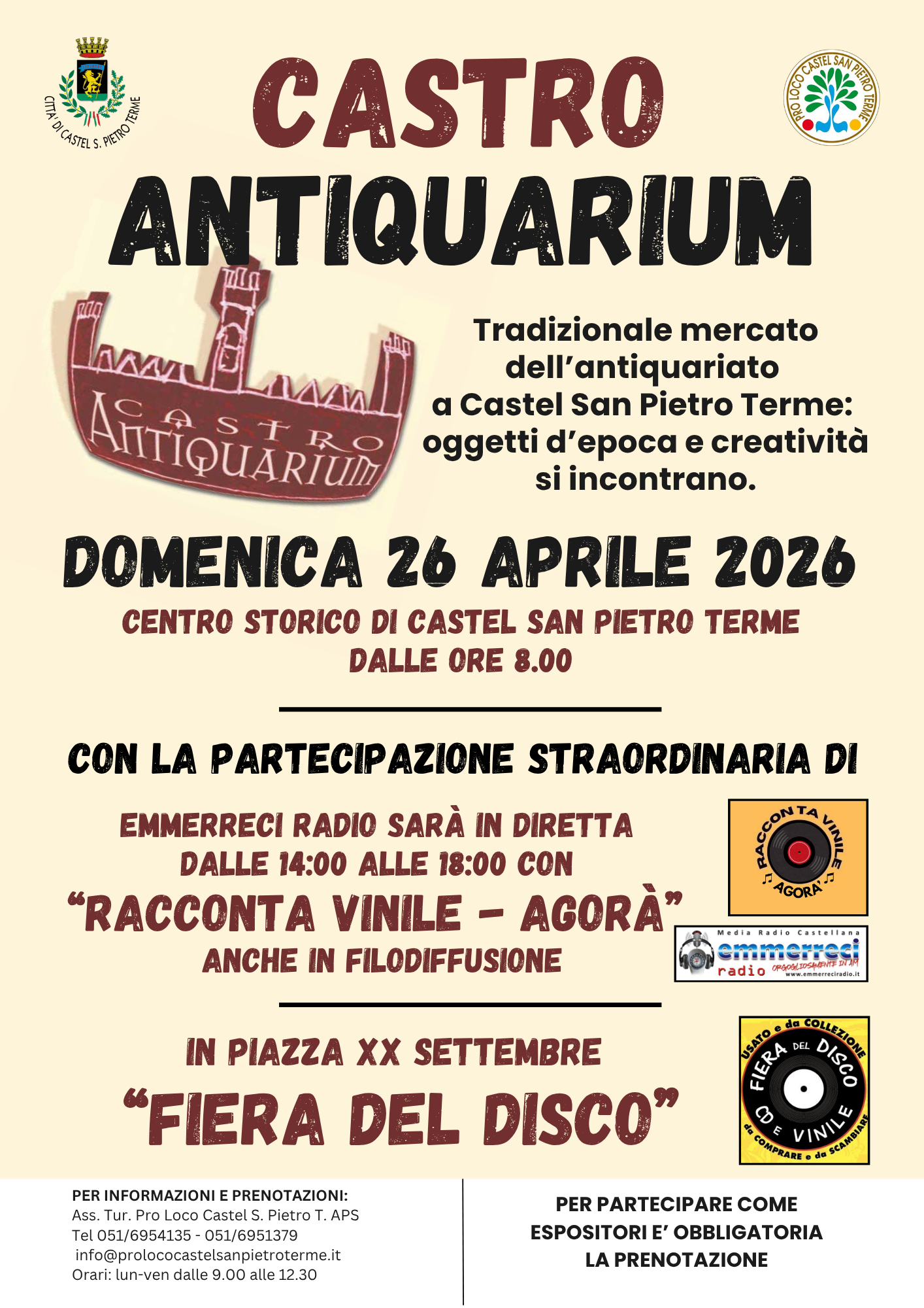 Grande novità di questa edizione sarà la Fiera del Disco, in programma in Piazza XX Settembre: un nuovo spazio pensato per innovare e caratterizzare ulteriormente Castro Antiquarium, dedicato agli appassionati di vinili e collezionismo musicale, con la possibilità di acquistare, vendere e scambiare dischi. Un’iniziativa che amplia l’offerta della manifestazione e la rende ancora più attrattiva per pubblici diversi e nuove generazioni di visitatori.